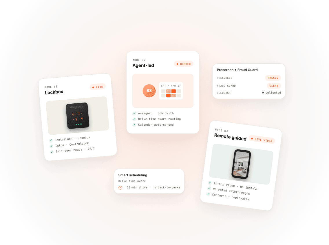 Built for agent-led and self-guided showings, with Smart Scheduling and lockbox integrations
