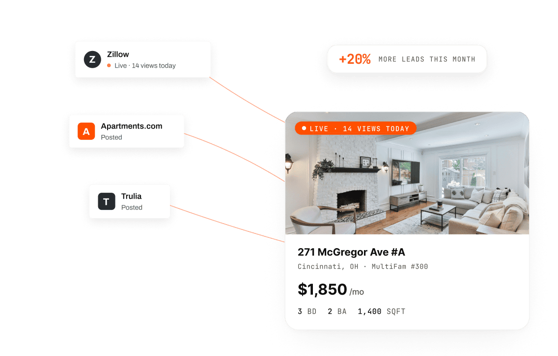 Use advanced marketing to list on the 30+ biggest websites and get 20% more renter leads.