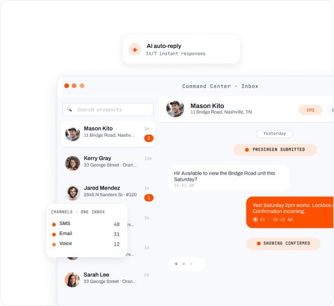 Capture initial intent, follow-up, schedule, and manage rental applications all in one place.